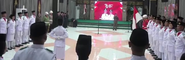 GalaxyNews.Co.Id.Batanghari/Jambi.- Pengukuhan Anggota Pasukan Pengibar Bendera Pusaka (paskibraka) Kabupaten Batang Hari tahun 2024 dalam rangka Pelaksanaan Pengibaran dan Penurunan Bendera Merah Putih pada Upacara HUT Republik Indonesia ke-79 berjalan tertib, khidmat dan sukses bertempat di ruang kaca Serambi Rumah Dinas Bupati pada (15/8/2024).