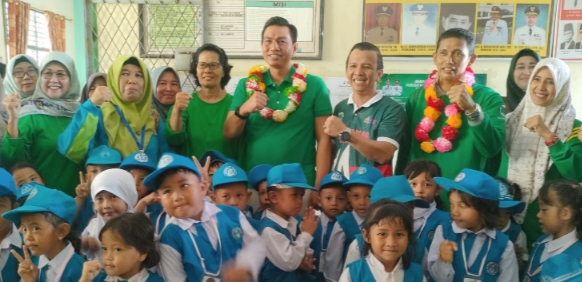 GalaxyNews.Co.Id.Batanghari/Jambi.-Bupati Batang Hari, Mhd Fadhil Arief menghadiri kegiatan gotong royong Pemerintah Daerah bersama masyarakat kecamatan Pemayung sekaligus orientasi masa transisi PAUD ke SD dan Penandatanganan Stunting pada anak, di halaman SMP Negeri 8 Selat Kecamatan Pemayung, Selasa (25/07/2023).