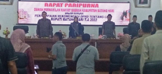 Rapat Paripurna DPRD dipimpin langsung Ketua DPRD Anita Yasmin, dalam hal penyampaian rekomendasi DPRD terhadap laporan keterangan pertanggung jawaban (LKPJ) Bupati Batanghari tahun 2022, penyampaian rekomendasi disampaikan anggota DPRD Drs. M.Amin dari fraksi Partai Gerindra.