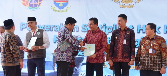 Disampaikan Bupati Batang Hari bahwa penyerahan sertifikat yang diberikan oleh Menteri ATR/BPN merupakan salah satu program PTSL yang kita usulkan melalui BPN Batang Hari, dan Pemerintah Batang Hari berharap kedepan akan berkurang tanah masyarakat yang belum bersertifikat sehingga akan menekan jumlah konflik agraria di Kabupaten Batang Hari, tutup Fadhil.