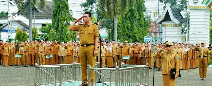 Pasca Cuti Kampanye Pemilukada Bupati Mhd.Fadhil Arief Bertindak Inspektur Upacara Di Halaman Kantor Bupati
