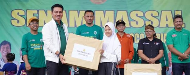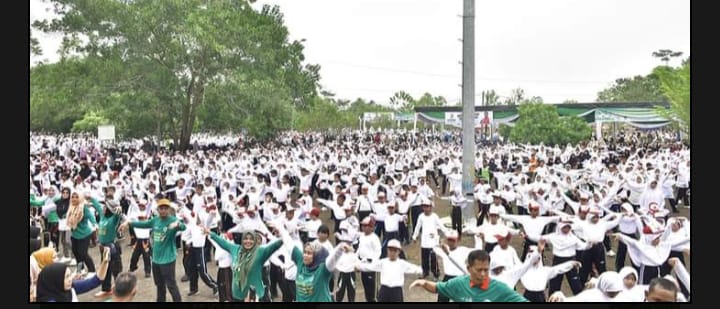 GalaxyNews.Co.Id.Batanghari/Jambi.-Dalam rangka menyambut Kabupaten Batang Hari ke-75 pemerintah daerah melaksanakan senam poco-poco ceria 5000 peserta pelajar mengikuti kegiatan tersebut, pada Minggu (12/11/2023), dilaksanakan di Lapangan MTQ Kabupaten Batanghari di Kecamatan Muara Bulian.