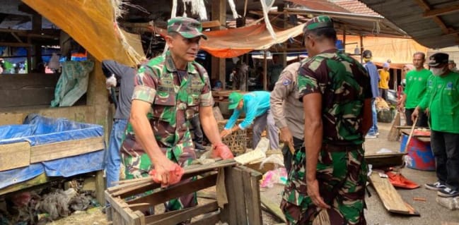 GalaxyNews.Co.Id.Batanghari/Jambi.-Untuk mengantisipasi terjadinya banjir dan juga dampak buruk kesehatan pada musim penghujan.Kodim 0415/ Jambi bersama stakeholder terkait dan juga masyarakat melakukan karya bakti TNI di Pasar Keramat Tinggi, Kecamatan Muara Bulian, Kabupaten Batanghari pada Sabtu, 9/12/2023.