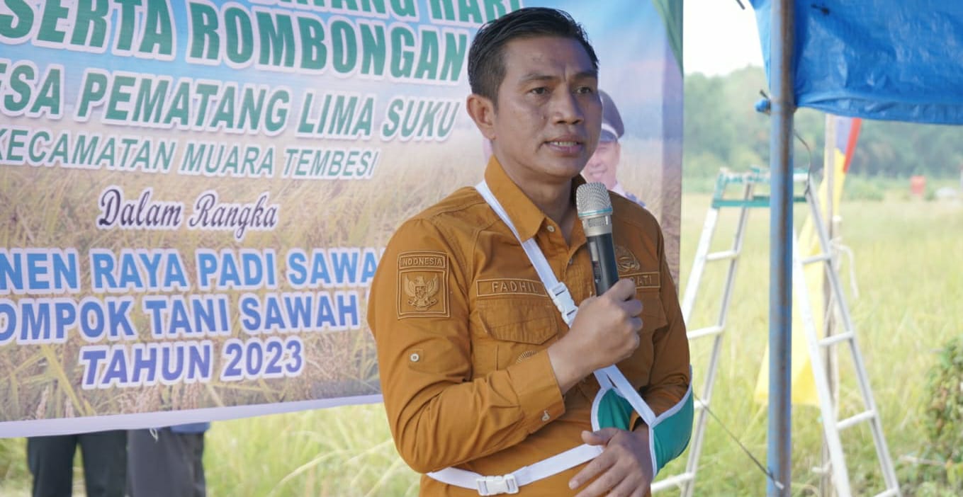 Baru baru ini Bupati Batanghari Mhd.Fadhil Arief melaksanakan kegiatan panen raya padi di desa Pematang lima suku kecamatan Muara Tembesi pada Senen (18/9/2023), walaupun kondisi tangan sebelah kiri beliau masih terbalut bekker tampak Bupati Batanghari terus berupaya memberikan motivasi kepada seluruh para petani yang hadir.