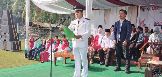 Dedi Rosadi, Kepala Desa Napal Sisik, bertindak sebagai Inspektur Upacara.