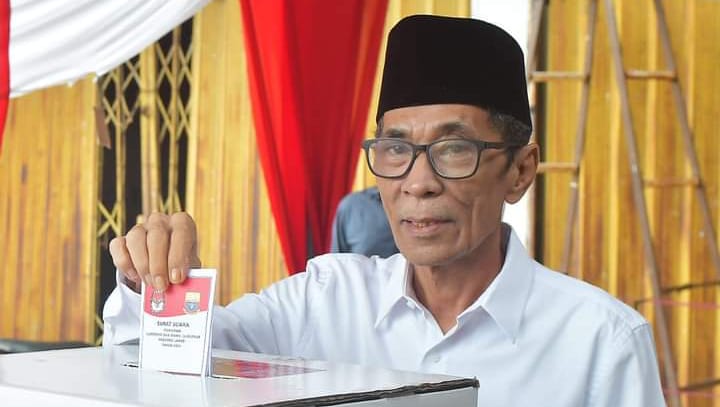 Dengan mengenakan pakaian kemeja putih Wakil Bupati berangkat dari kediaman pribadi di awali berdoa atas hajat yang di tunaikan dan damai nya Pemilukada 2024. Keberangkatan Wakil Bupati ke TPS di iringi putra beliau Ibnu Satria beserta istri dan Masyarakat sekitar yang akan memberikan hak pilihnya dalam Pemilukada ini.